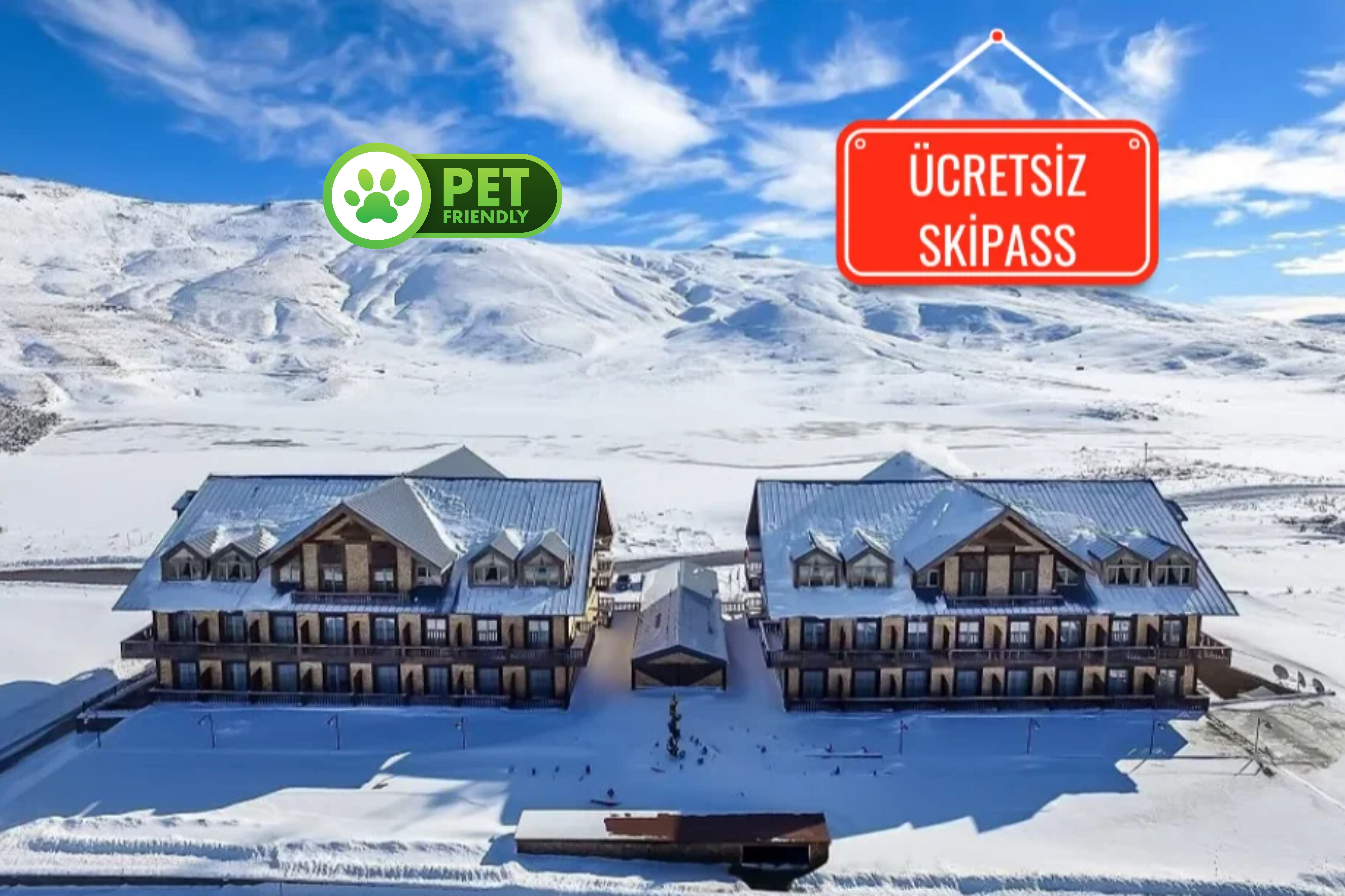- 3 gece'ye kadar olan konaklamalarda kişi başı 14 çıkışlı, 4 gece ve üzeri konaklamalarda ise kişi başı 30 çıkışlı Ski Pass ücretsiz verilecek olup, depozito karşılığında teslim edilecektir.