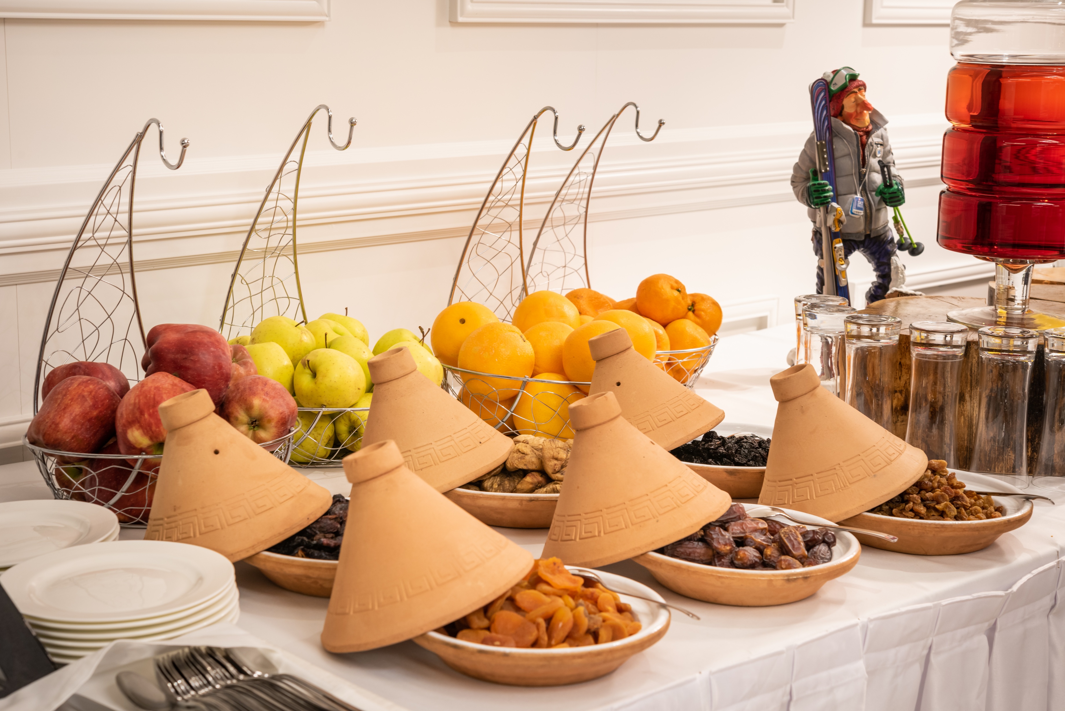 - Chalet Oda misafirleri, kahvaltı ve akşam yemeği hizmetini Apres Cafe'de alabilir veya Apres Cafe'den odaya gönderimi sağlanır. Otelde ana restaurantta alınacak kahvaltı ve akşam yemeğinde içecekler ücretsiz olarak sunulmaktadır. Apres Cafe'den talep edilen içecekler ise ücretlidir.