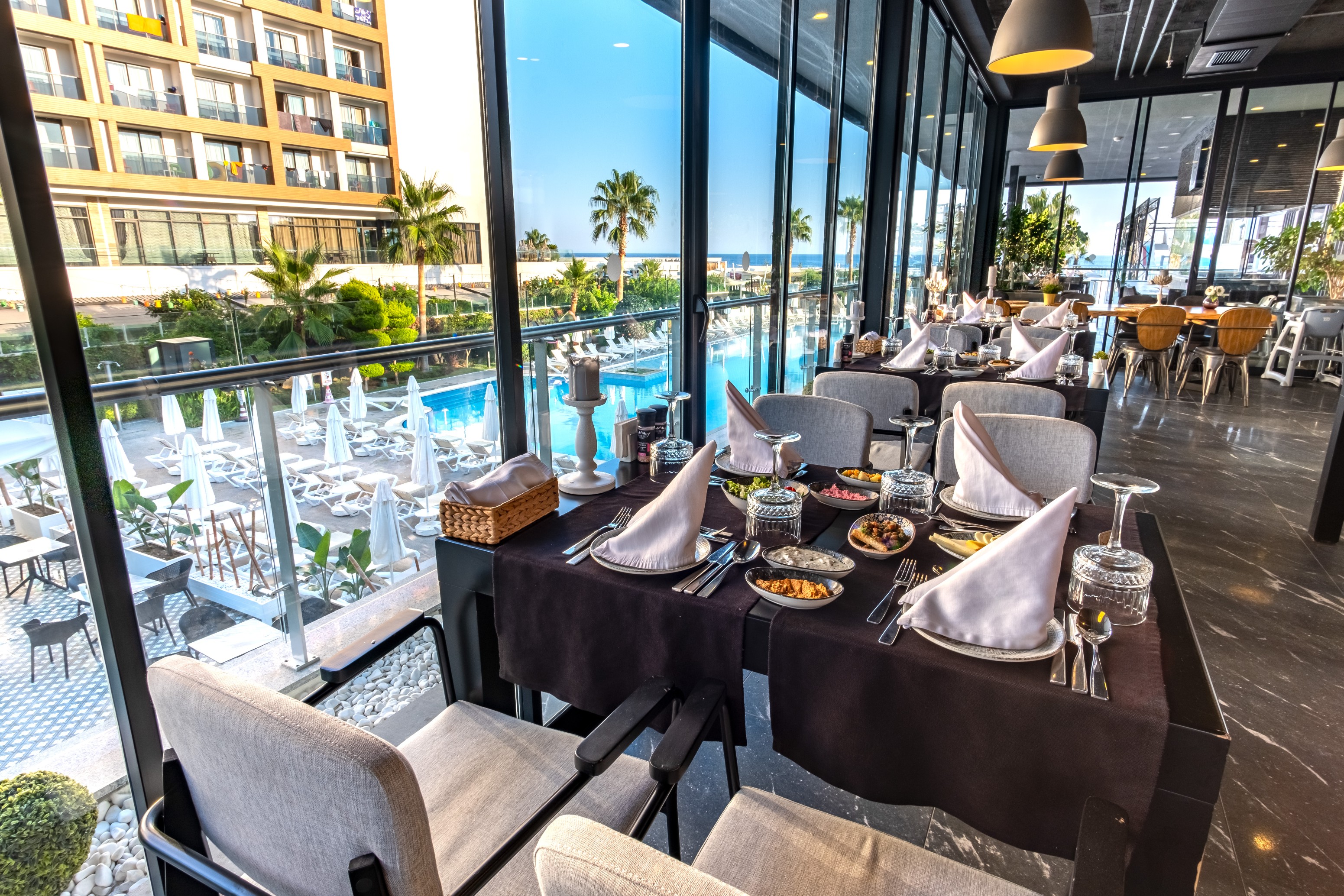 Terrace Taverna yeni ve modern bir tasarımla oluşturulmuştur. Özel plaja bakan konumuyla, eşsiz Akdeniz Manzarasında yemek yeme keyfini yaşatmaktadır. Akdeniz Mutfağından seçeneklerle ağırlıklı olarak deniz ürünleri servis edilir. Restoran; güneşin batışıyla denizde ve gökyüzünde oluşan renk geçişlerini izlemenin keyfini yaşamaya davet eder.