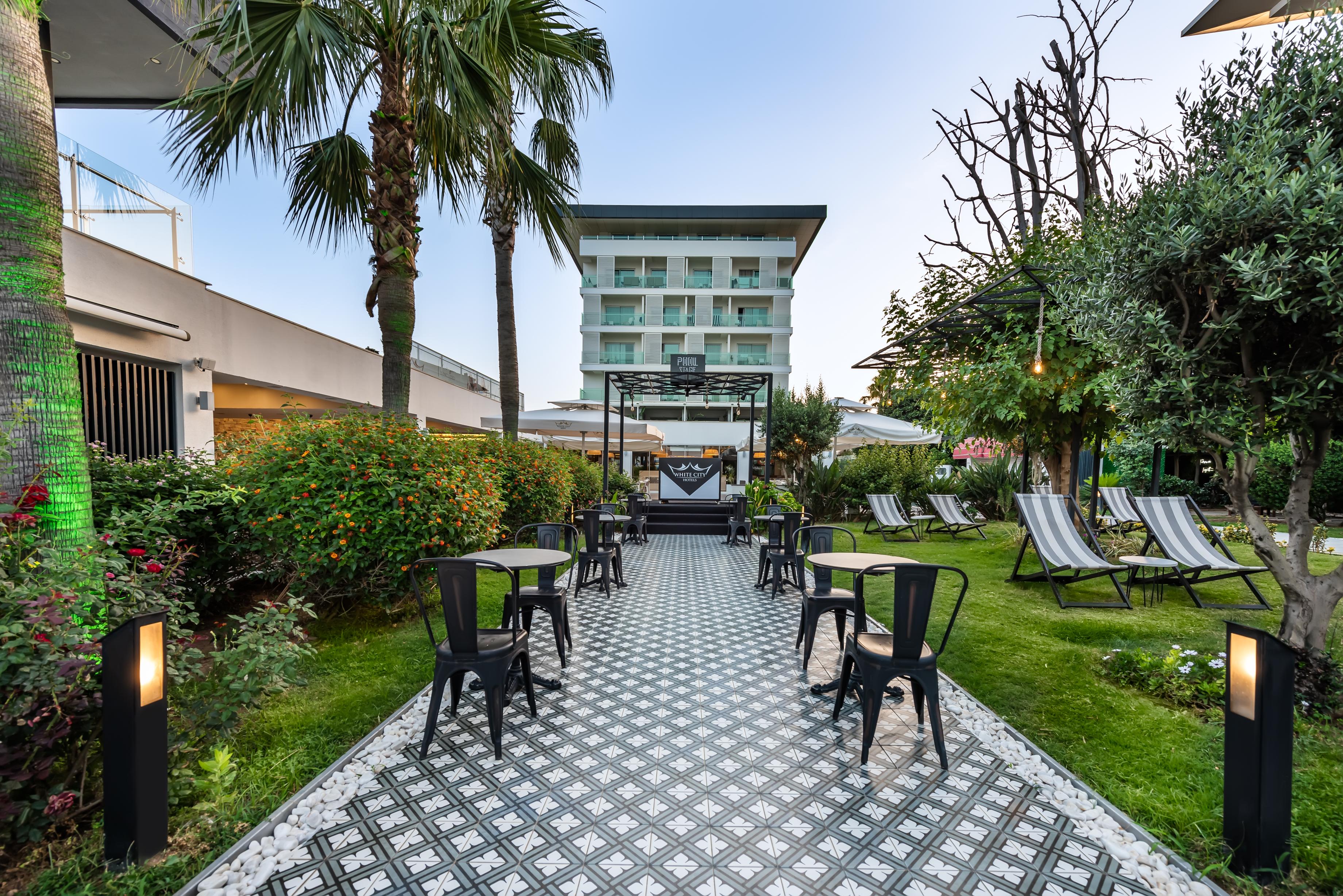 5 yıldızlı White City Resort Hotel, Türkler yarımadasında, deniz kenarında, yanı başında muz ağaçları ve önünde müthiş Akdeniz mavisi, arkasında ise Toros Dağlarının yeşili ile bütünleşmiştir. Yalın mimarisi, kalite odaklı ürün ve servisleri, çeşitlendirilmiş genel kullanım alanları ve tüm detayları düşünülmüş ulaşılabilir hizmetleriyle yüksek misafir memnuniyetini ilke edinen tesis her yaştan misafirlerine ayrıcalıklı bir üst segment tatil deneyimi sunmayı amaçlamıştır.