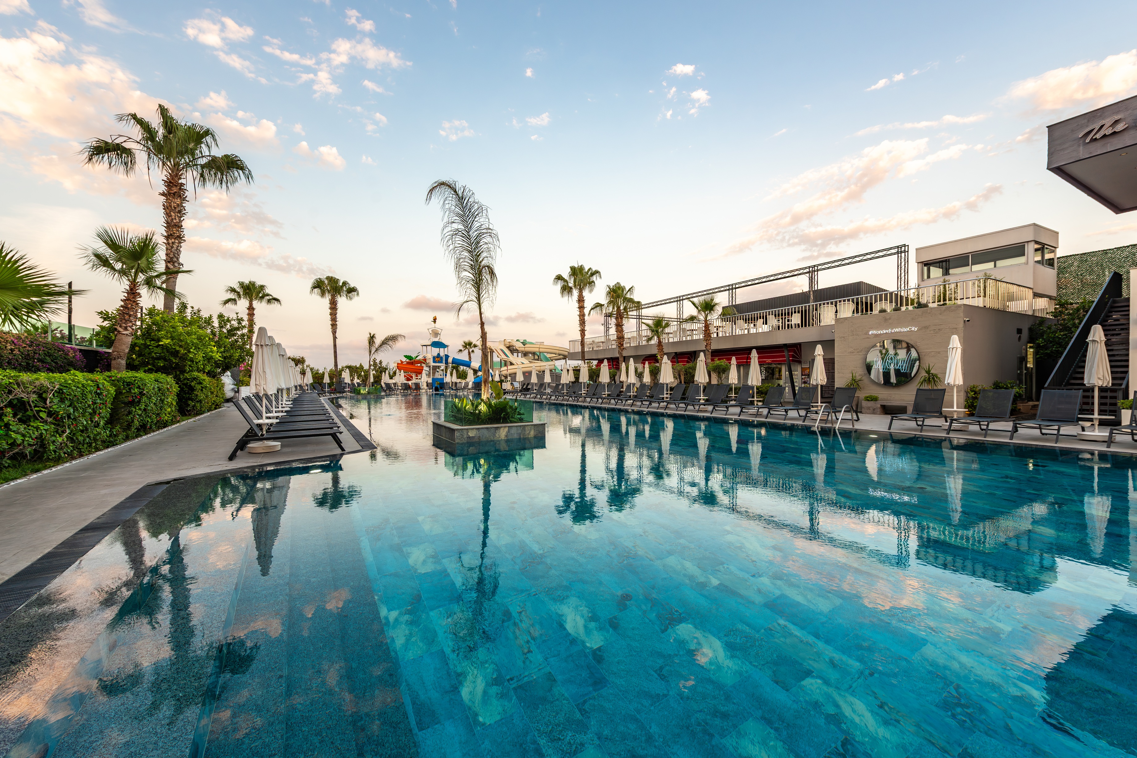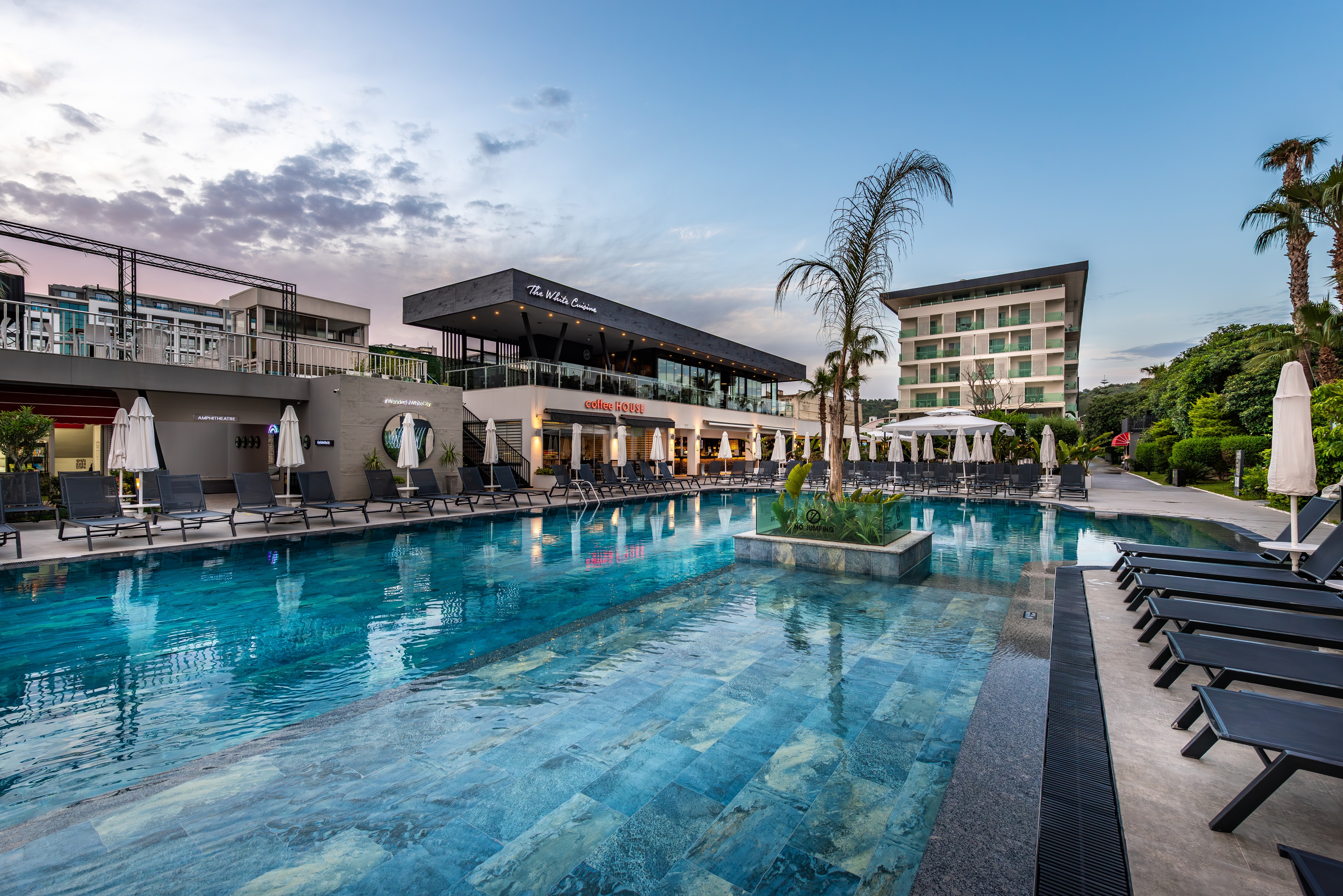 5 yıldızlı White City Resort Hotel, Türkler yarımadasında, deniz kenarında, yanı başında muz ağaçları ve önünde müthiş Akdeniz mavisi, arkasında ise Toros Dağlarının yeşili ile bütünleşmiştir. Yalın mimarisi, kalite odaklı...