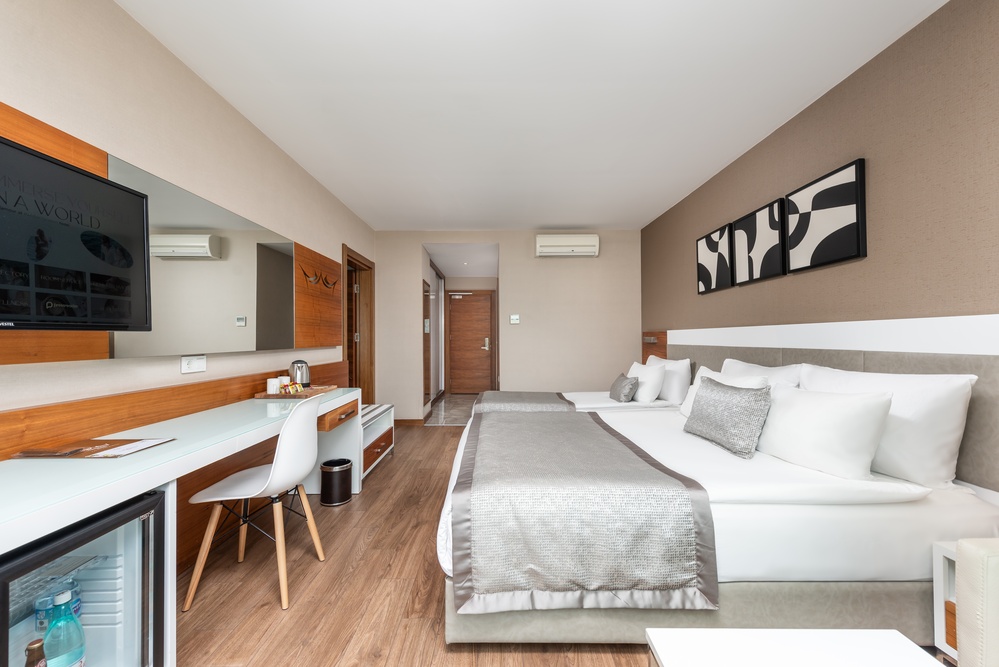 Minibar: Soft içecekler günlük yenilenir, alkollü içecek (bira) sadece ilk girişte verilir. (2. Dolum ekstra ücretlidir)